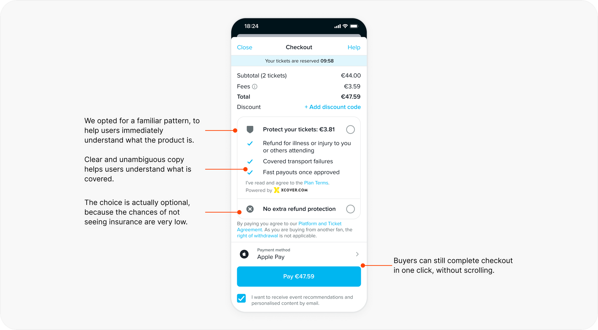Next to these well needed improvements, we were planning to introduce optional products like insurance during checkout. And there were big concerns about how we would do this without hurting conversion or trust.